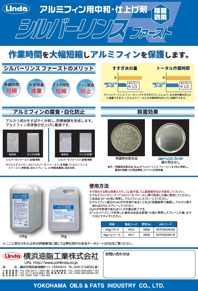 - シルバーリンスファーストを10―20倍希釈し、アルミフィンにスプレーして下さい。